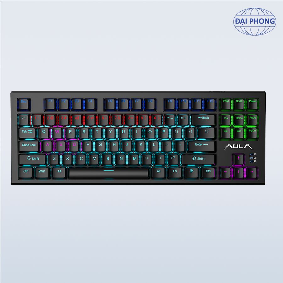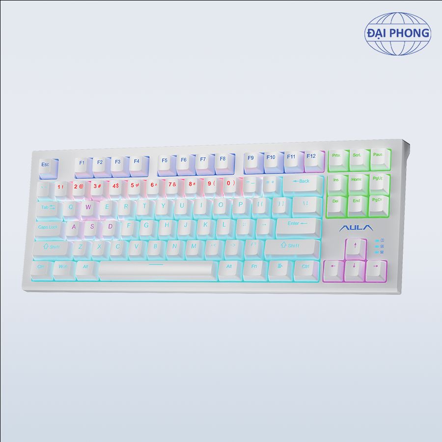 • Bàn phím cơ gaming AULA F3032• Độ bền phím: 60 triệu lần bấm • Kết nối: USB type-C • Màu sắc: Màu trắng, Màu Đen • Đèn nền: LED Rainbow 7 màu, có thể đổi màu linh hoạt theo hiệu ứng âm thanh • Loại switch: Brown switch, Red switch• Hiệu ứng âm thanh khi gõ phím: Tactile bản Brown switch, Linear bản Red switch • Số lượng phím: 87 phím • Chất liệu keycap: Nhựa ABS • Điện áp định mức: DC 5V • Dòng điện định mức: <200mA • Trọng lượng: 827g • Kích thước bàn phím (LxWxH): 367,72 × 136,05 × 35,94 ± 0,5 mm • Phím FN đa chức năng • Hệ điều hành tương thích: WIN XP/WIN7/WIN8/WIN10 • Phụ kiện kèm theo: Sách hướng dẫn sử dụng, 21 Keycap tặng kèm, dây USB type-C, dụng cụ thay keycap