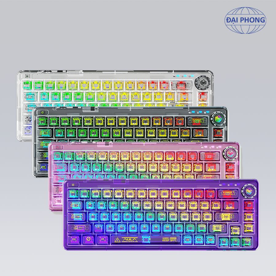 • Bàn phím cơ gaming AULA F81• Độ bền phím: 60 triệu lần bấm• Kết nối: 3 mode có dây Type-C & không dây 2.4G & BT• Màu sắc: 4 màu đen, trắng, tím, hồng• Keycap: PC trong suốt• Plate: PC trong suốt• Đèn nền: LED RGB với 20 hiệu ứng ánh sáng• Loại switch: Crystal switch• Hiệu ứng âm thanh khi gõ phím: Linear• Hot-Swap 5 pin• Gasket mount• Núm xoay đa chức năng• Mạch: Ngược• Số lượng phím: 81 phím• Hành trình phím: 4.0mm• Phím FN đa chức năng• Kích thước bàn phím (L x W x H): 330,20 x 120,67 x 45,25 mm ± 0,5 mm• Trọng lượng: Khoảng 765g (không bao gồm dây)/ 813g (bao gồm cả dây)• Điện áp/Dòng điện sạc: DC 5V 600mA• Điện áp định mức: DC 3.7V (Đầy đủ 4.2V)• Dòng điện định mức: 170mA @3.7V (hiệu ứng ánh sáng mặc định)/35mA (tắt tất cả đèn)• Dung lượng pin: Pin Lithium có thể sạc lại 4000mAh• Thời gian sử dụng sau khi sạc đầy pin: Khoảng 23 giờ (hiệu ứng ánh sáng mặc định)/ 114 giờ (tất cả đèn tắt)• Giao diện sạc: Type-C• Hệ điều hành tương thích: WIN XP/7/8/10/Android/IOS/MAC• Phụ kiện kèm theo: Sách hướng dẫn sử dụng + Khung bảo vệ phím + Decal dán + Dây USB type-C + Dụng cụ thay keycap + Bộ vệ sinh bàn phím
