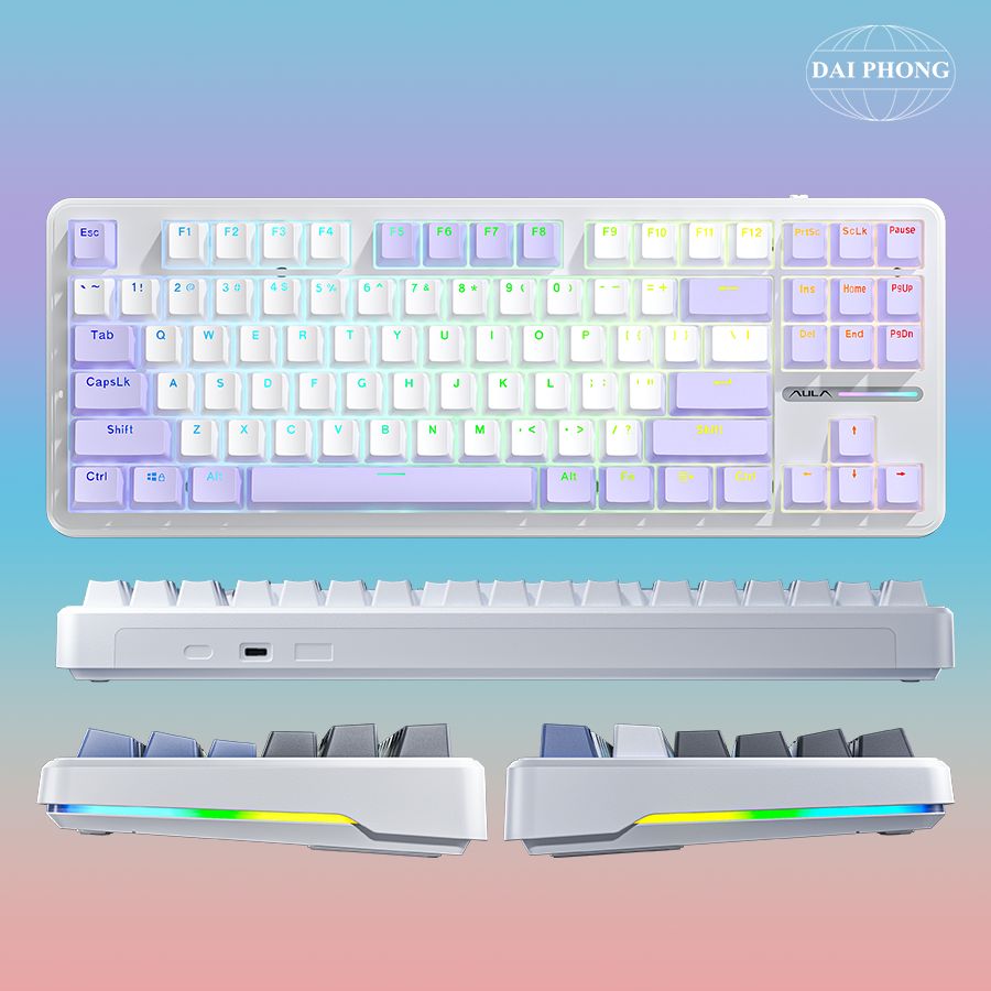 AULA F87 BÀN PHÍM CƠ GAMING CÓ DÂY (Phiên bản tím trắng/blue switch)