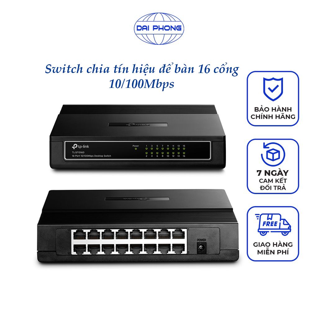 - 16 cổng RJ45 10/100Mbps với kỹ thuật chiếm quyền điều khiển cáp (Auto-Negotiation) và hỗ trợ tính năng MDI / MDIX