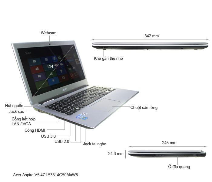 Cổng kết nối trên laptop Acer V5-471 bao gồm:
