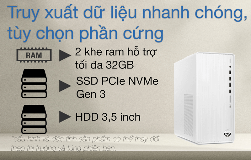 Để chạy mượt mà, không giật lag, xử lý nhanh chóng các tác vụ trên máy, khởi động máy chỉ trong vài giây HP Pavilion TP01-3017D 6K7H2PA mang trên mình RAM 8Gb DDR4-3200 MHz tích hợp ổ cứng 512GB PCIe® NVMe™ M.2 SSD.