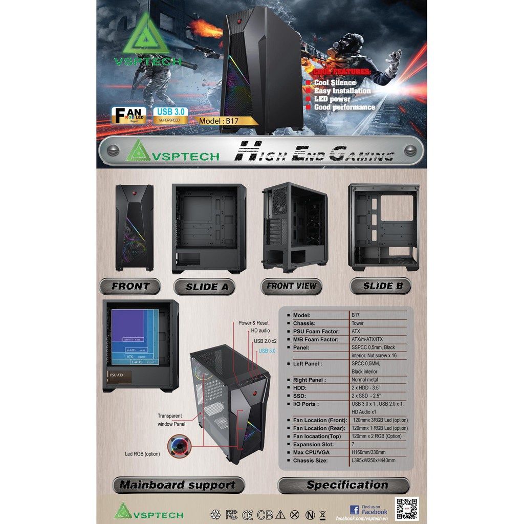 - Hỗ trợ Mainboard: e-ATX, ATX, Micro ATX, Mini-ITX